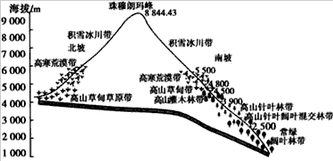 (1)珠穆朗玛峰南坡比北坡雪线______,原因是______________________________________________。
