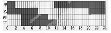 小题1:读图,图中每两个格表示1小时,所以可以判断昼长由长到短依次是丙、丁、乙、甲,开幕时是7月份,北半球是夏季,全球从南向北白昼时间逐渐增长。所以甲地从南向北排列正确的是甲、乙、丁、丙,选项D对。A、B、C错。