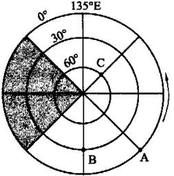 点评:本题看似复杂,但学生只要抓住图示的经纬度信息,解题的关键是掌握地球自转速度的变化规律和经纬网上方向判断的基本方法。