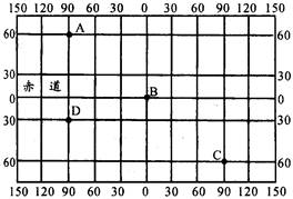 (3)A地经纬度是_________;B地所在国是_______;D地冬半年看北极星的仰角是______。