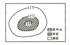 1.图示市区较郊区气温高,故判断为城市热岛效应,其形成原因为城市人口集中,工业发达,建筑物密集,排放大量废热而形成热岛。