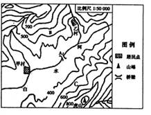小题2:根据等高线的特征,水向低处流,白水河自东北流向西南;乙村位于山谷,容易受到滑坡、泥石流的影响。
