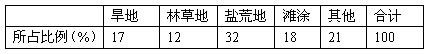3、某三角洲面积增长较快,且2007年土地利用构成如下表所示,(其中盐荒地与旱涝灾害频发有关),