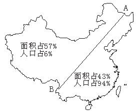 参考答案:(1)AB一线为?黑河-腾冲一线?(人口分界线)(4分), 它反映了我国人口?分布不均 ?。(4分)