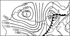 | C | ? | ? 参考答案: 本题解析:略 本题难度:一般 2、单选题 读所给的四幅天气系统图,回答问题。 |