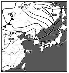 2、单选题 读1月20日15时(北京时间)东亚地区气压(单位:百帕)分布图,完成下列小题。