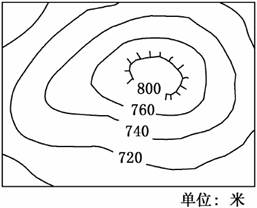 5、单选题  下图中等高线表示最近被地质地貌专家认定的一种新的岩石造型地貌。读图回答5~6题。