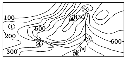3、单选题 下图是某区域等高线图,据图完成下题。
