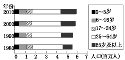 4、单选题 如图是某地区人口数量变化图。读图,回答1—2题。