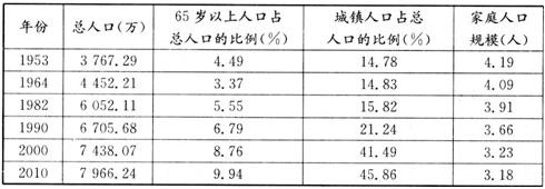 4、单选题 读“我国某省1953~2010年人口数据统计表”,完成1—2题。