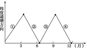1.曲线由①→②→③变化的时段内,太阳直射点的移动情况是2.曲线由③→②变化的时段内,下列说法正确的是