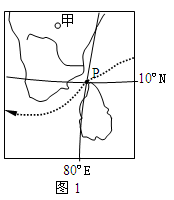 3、单选题  中国某一远洋运输船舶沿着图1中虚线航行,在阳光初露海面时,刚好通过P地,此时,收音机正在播报北京时间为9:00整。回答问题。