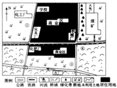 4、单选题  图为华北某小镇略图,该城镇依托矿产资源,调整工业结构,发展循环经济,你认为最适宜在该城市布局的工厂是
