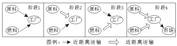 2、单选题 下图表示某种工业区位选择的历史发展阶段。读图回答1—2题。