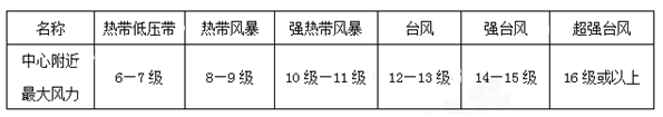 1、单选题 自2006年6月15日起,新“热带气旋等级”国家标准正式颁布实行。根据新标准,热带气旋分为热带低压带,热带风暴、强热带风暴、台风、强台风和超强台风六个等级(见下表)。读表回答下列各题。