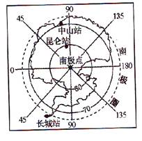 1、单选题 下图为“我国三个南极科学考察站分布示意图”,其中昆仑站于2010年1月27日建成,这是我国在南极内陆建成的第一个科学考察站。读图完成下列问题。