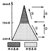 小题1:与图中海拔7500米以下相比,海拔7500米以上几乎没有积雪的主要原因是