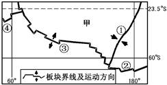 4、单选题  图为世界某区域板块界线示意图,读图回答下列各题。