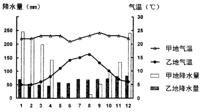 小题2:甲、乙两地可能种植的主要经济作物分别是