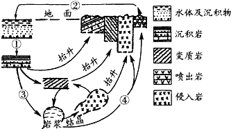 3、单选题  读地壳物质循环示意图,图中数字表示地质作用,两者对应正确的是