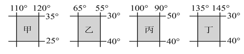 2、单选题 读下列四个区域的经纬网图,完成各题。