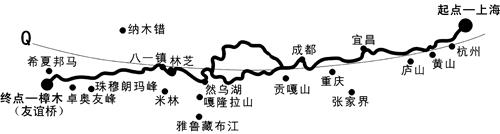 5、单选题 “中国人的景观大道”(如下图所示)是指从上海一直延伸到西藏樟木友谊桥的318国道。这条大致分布在Q纬线附近的带状景观长廊,几乎整合了中国所有类型的自然景观及人文景观。据此,读图完成下列问题。