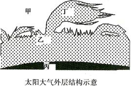 3、单选题 读“太阳大气结构示意图”,其中丁表示日珥。据此完成题