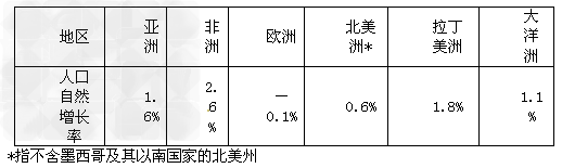 3、单选题 根据各洲人口状况和下表资料,正确的结论是