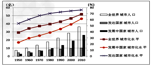 2、单选题 读1950 ~2010 年世界城市化进程示意图,回答1 ~2 题。