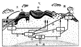 4、单选题 读岩石圈的物质循环图,回答问题:
