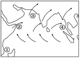2.结合图示,受北半球西南季风影响,②地区表层海水形成离岸流,故垂直方向上形成上升补偿流。