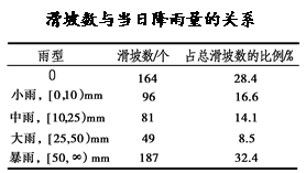 (2)读图可知,雨型越大,降水量越多,发生滑坡个数越多。滑坡一般发生在降水丰富的地区,主要发生在雨季。