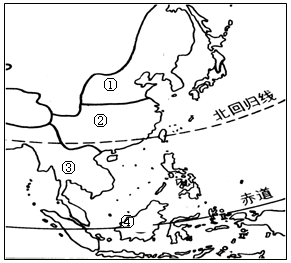 (1)亚洲东部地区为典型的季风气候,根据①②两地所在的位置可知,①为温带季风气候,②为亚热带季风气候。