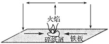 (1)在下面图中用线条和箭头画出该实验中的纸片和灰烬的运动过程。