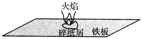 (1)在室外安全、无风的地方,放置一块铁板,在铁板上放置一小堆纸,并用火柴点燃。