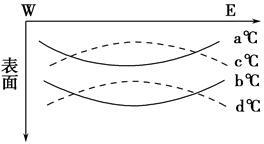 5、单选题  洋流可以影响海水的水平温度,从而导致海水剖面图水温等温线发生变化,若下图海水表面水温仅仅考虑洋流的影响,据图回答下列小题。