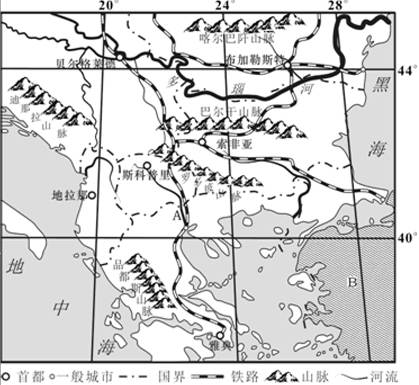 (3)城市区位的分析把握地形、气候、水源、交通、政策等方面,结合所学知识,罗马尼亚的首都布加勒斯特发展的区位条件有:位于多瑙河下游平原,地势平坦;地处中纬度,气候凉爽适宜;有河流经过,淡水充足;地处铁路枢纽,交通便利;国家首都,具有政治优势。