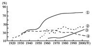 5、单选题 工业化率是工业增加值占全部生产总值的比重,城市化率为城镇常住人口占总人口的比重。下图是中国和日本的工业化率与城市化率变化曲线,读图回答题。