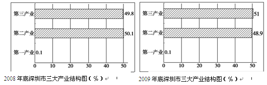 3、单选题 据深圳市统计局数据显示,2009年深圳市GDP达7806.54亿元,比上年增长12.1%。三大产业结构得到进一步优化。据此并结合下面两图,完成问题。