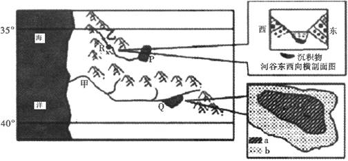 5、单选题  读“世界某区域简图”,图的右侧分别为“乙河流R地河谷剖面示意图”和“Q湖不同季节蓄水面积分布图”,读图完成下列问题。
