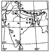 (2)印度的新兴工业主要集中在城市_______(填序号)附近。而重工业主要集中在城市_______(填序号)附近,试分析其发展的有利条件。(7分)