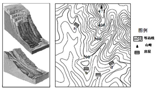 【小题2】图2所示的四处房屋,阳光射入时间最长,且受图5所示地质灾害威胁最小的是