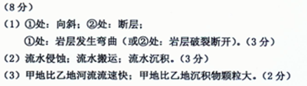 (3)据图14信息,比较图13中甲、乙地貌形成过程的差异。(2分)