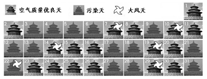 3、单选题 下图为某人绘制的北京2013年10月空气质量统计图。读图回答下列各题。