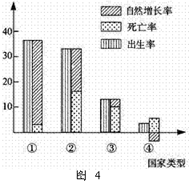 1.与目前我国人口增长状况相似的类型是:2.图中国家类型④所反映的人口问题主要是: