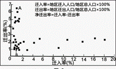 2、单选题 该图表示2000—2005年间我国各省区省级人口迁入率、迁出率(以5年为统计单位,不包括港澳台地区)。读图,回答问题。
