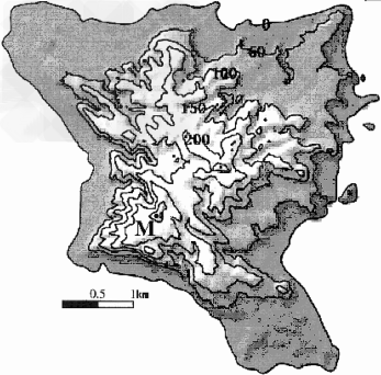 4、单选题  台湾省台东市以东约33千米处的绿岛,是台湾东部的海上乐园。下图为绿岛等高线地形图。读图2,回答1~2题。