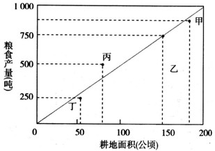 3、若甲、丁两地人口密度和耕地比重(耕地占国土面积的比重)都相同,则甲地比丁地