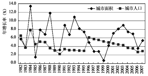 小题2:图示信息显示,1982~2007年我国城市化进程中面临的突出问题是