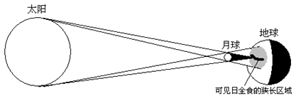 材料一?所谓“食”就是指一个天体被另一个天体或其黑影全部或部分掩遮的天文景象,日食和月食就是这样出现的。下图为日食形成原理图。